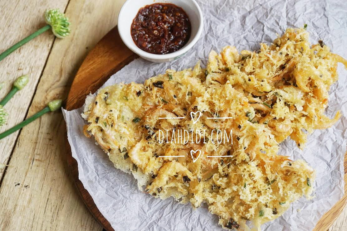 Sebenernya mau kasih apa judul resepnya ..bingung juga..hihi. Yang jelas ini adalah Rempeyek Udang bertabur Kremesan. Idenya dapat dari salah satu Resto Padang dekat rumahku. Tiap pagi aku kan ke bank dekat rumah, sampingnya persis ada resto Padang. nah..ada satu menu yang menggodaku tiap pagi, yaitu..Rempeyek Udang besar-besar yang bentuknya memanjang seperti perahu, atasnya bertabur kremesan. Unik banget dan beneran menggoda mata.