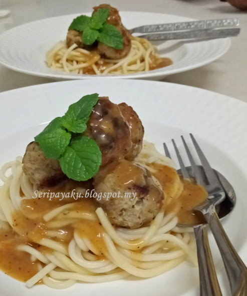 5- Kacau sebati. Tutup api, blender gravy tadi hingga halus. Tuang semula dalam periuk dan didihkan sebentar. Kacau sentiasa. Apabila sudah mendidih, tutup api dan tuang atas meatball. yummy!